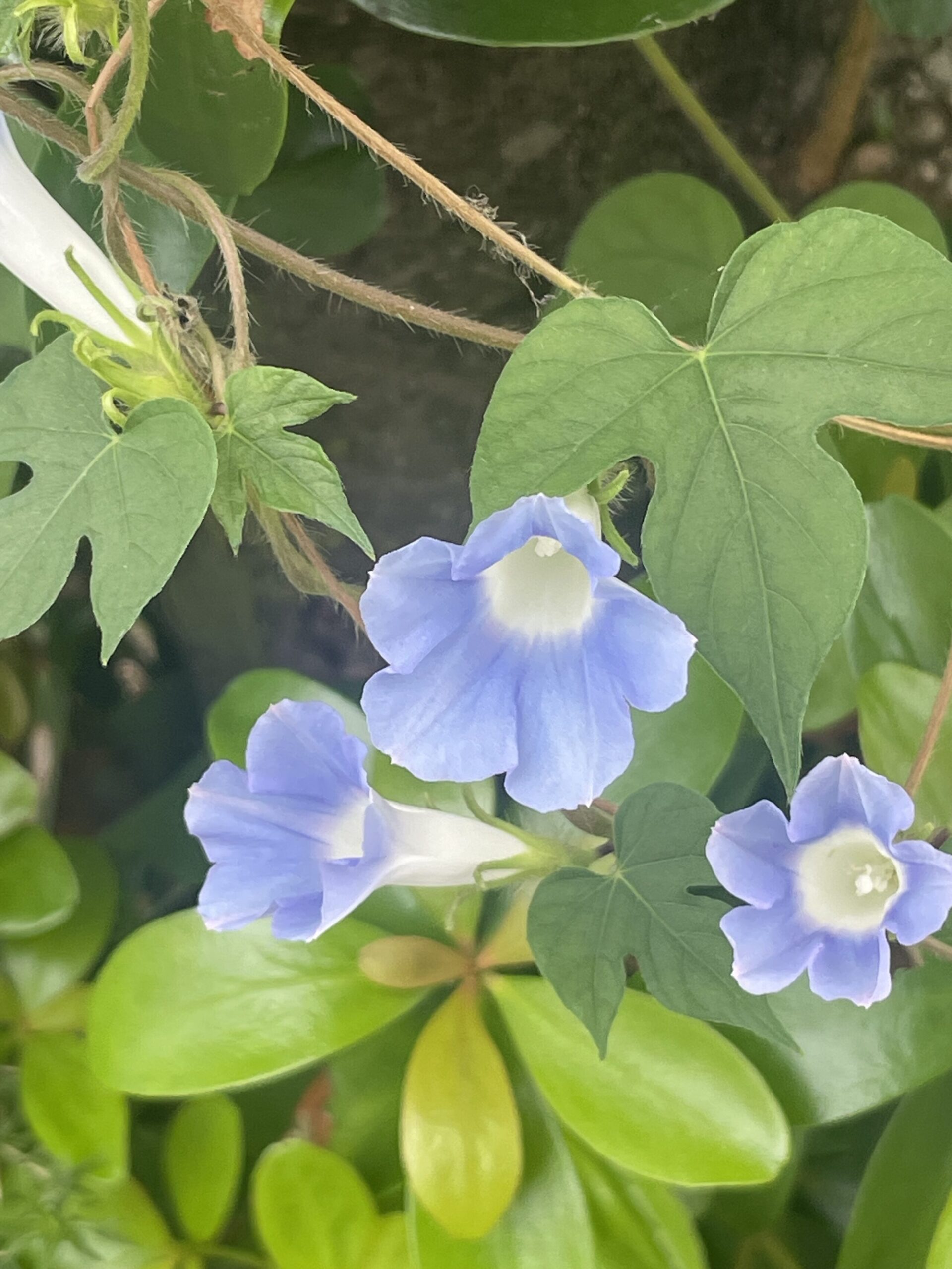 朝、散歩をしていたら小ぶりな朝顔が咲いるのを見つけました。