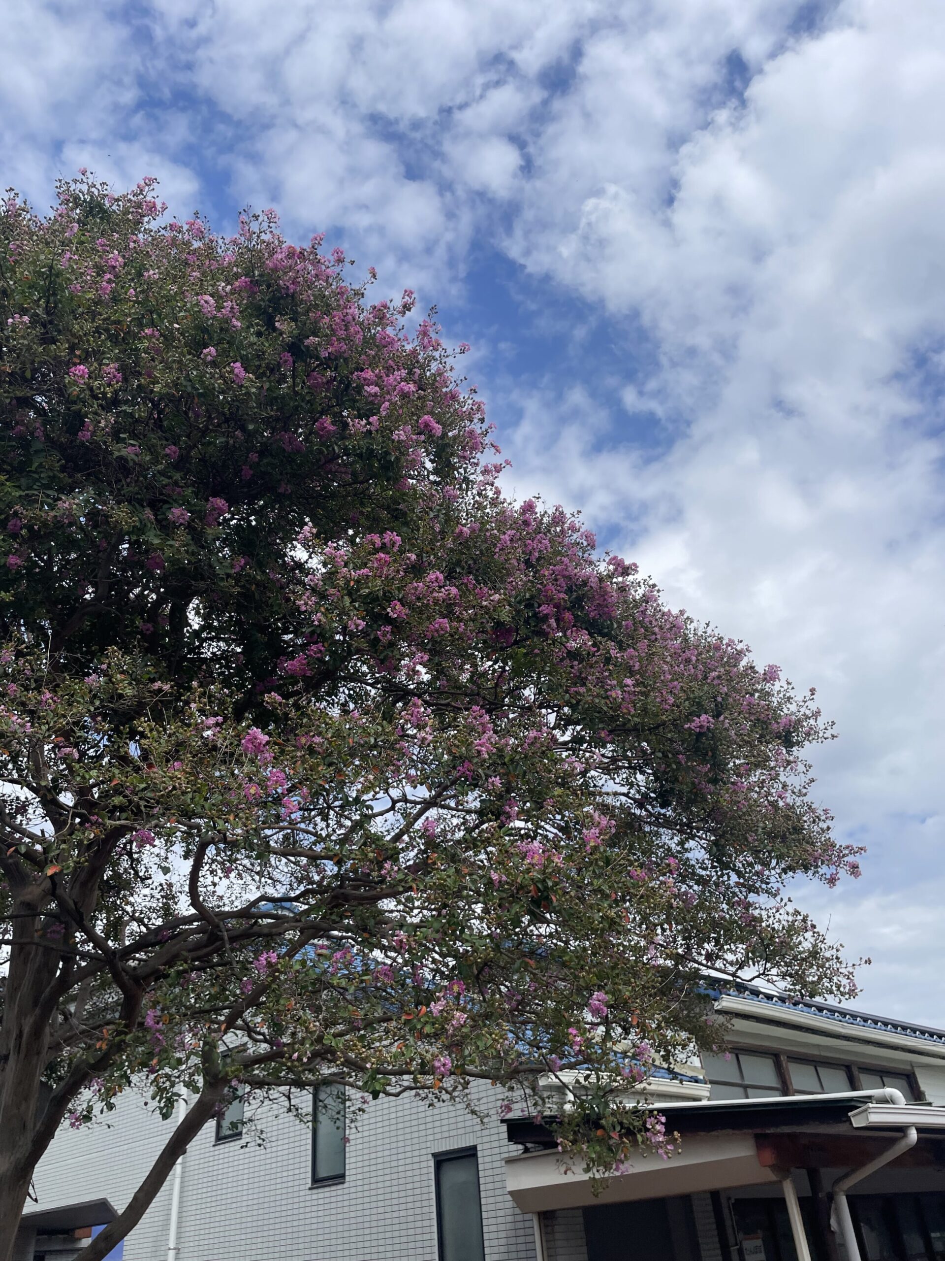 空は秋なのにサルスベリの花が咲いています。