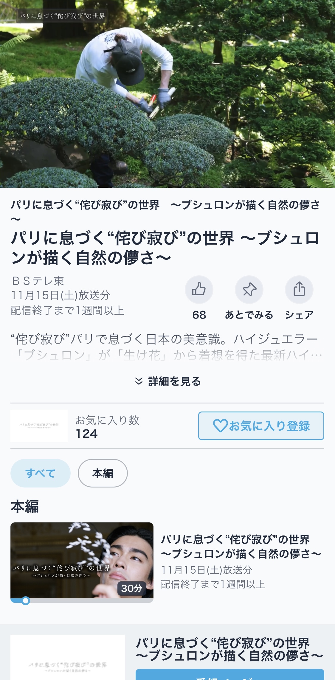 私の家族がテレビ関係の仕事をしておりフランスのパリ近郊の日本庭園を紹介して欲しいとの事でアルベルカーン日本庭園を紹介しました。それがテレビ番組となり放送されました。TV erで見れます。庭園の番組では無くファッション番組です。海外で日本のデザインが見直されているようです。