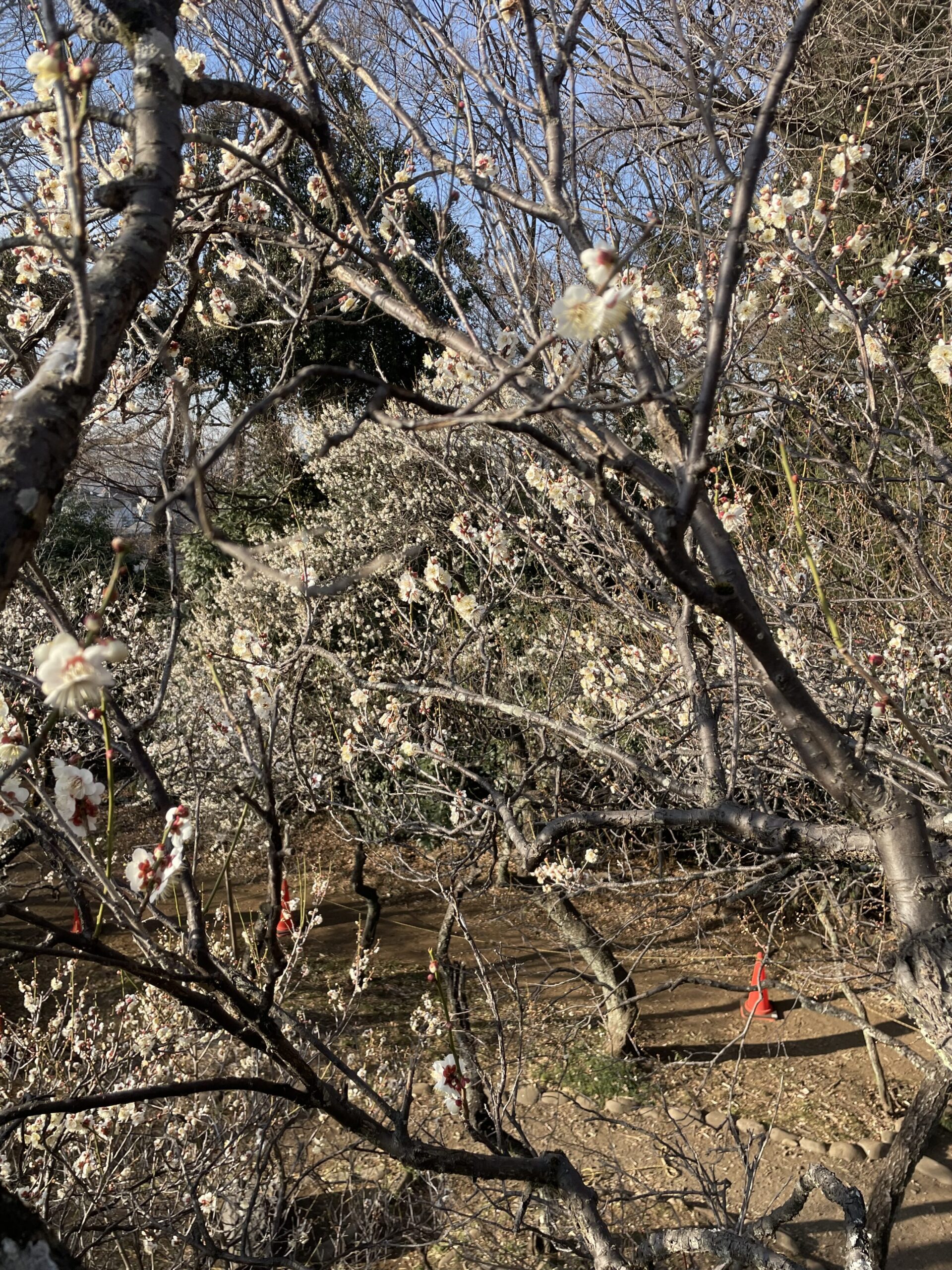 天満宮の梅の剪定をしています。花見の人が多なる前に枯れ枝を取り払います。白梅が綺麗に咲いてます。