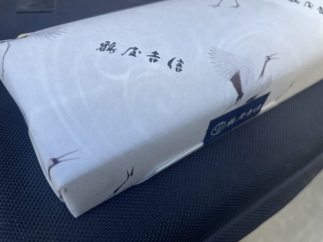 初仕事にて庭の蹲踞の竹を青竹に変えました。お客様より𠮷信のお菓子を貰いました。さすが茶人です。
