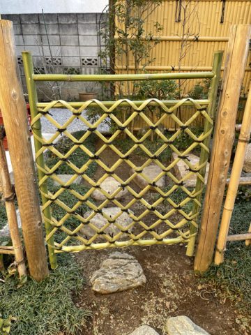 今年は初釜を行う先生が数年ぶりに多く、古い竹の青竹へ交換のご依頼もちらほらと頂きました。その作業にて枝折戸を交換しました。心新たに新年が始まりますね。