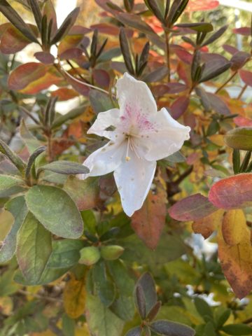 今年は暖かいのか時外れのツツジの花が咲いておりした。これもまた楽しい時外れの便りです。